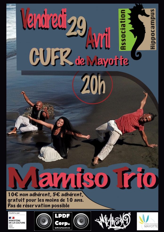 Mamiso trio, c’est la rencontre de trois musiciens chanteurs, et d’une histoire, racontée au gré des rythmes et des harmonies vocales, allant de l’énergie pure au recueillement. Les textes et compositions de Mamiso (prononcez Mamsou), ambassadeur de la grande île depuis les années 90 avec le groupe Senge, et ses acolytes Njiva et Cloé, sont inspirés, entre autres, par les traditions musicales du sud de son île natale. Interprétés a cappella ou accompagnés de percussions corporelles ou instrumentales, de divers instruments acoustiques, parfois chorégraphiés, les chants alternent des mélodies harmonisées et des parties plus théâtrales, formant un patchwork poétique à l’image des fêtes dans les villages de brousse.